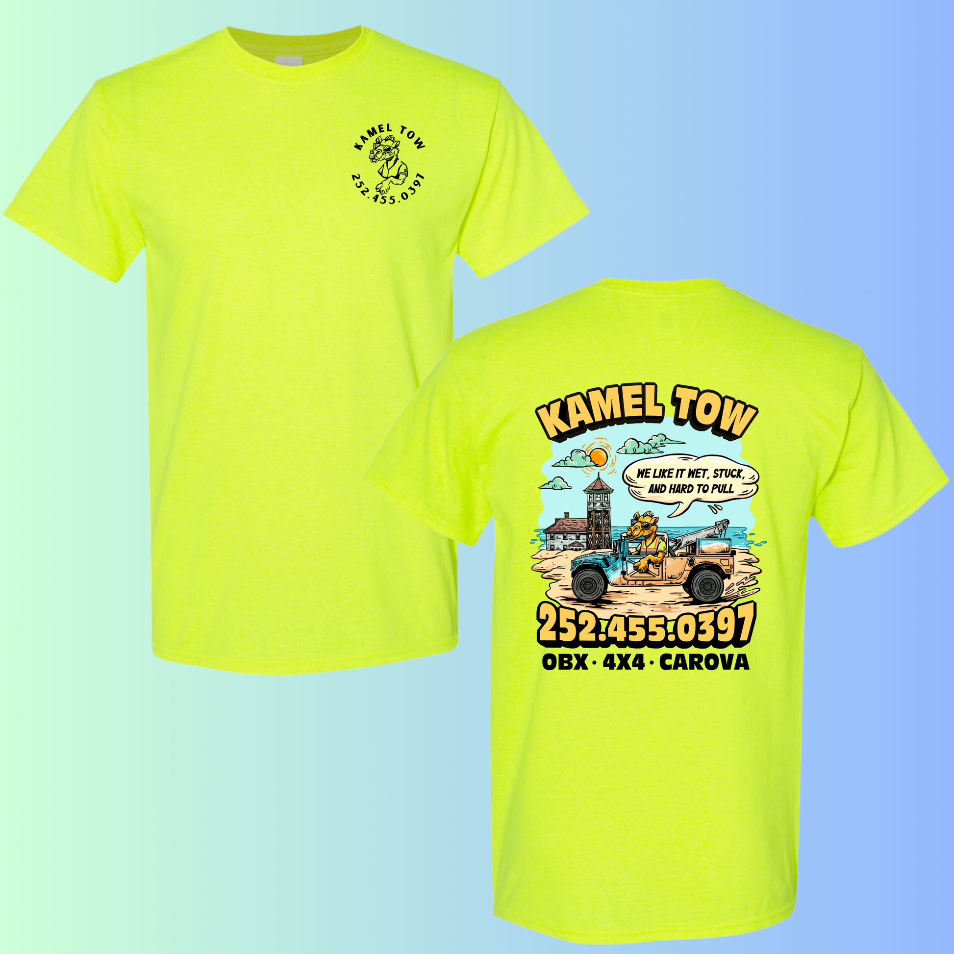 Kamel Tow Shirts have a small design on the front and a large design on the back.